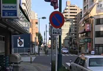 7、信号から100メートルほどで、サンスクエアビルにつきます。 ビル入口の右手の階段を3階まで上ります。